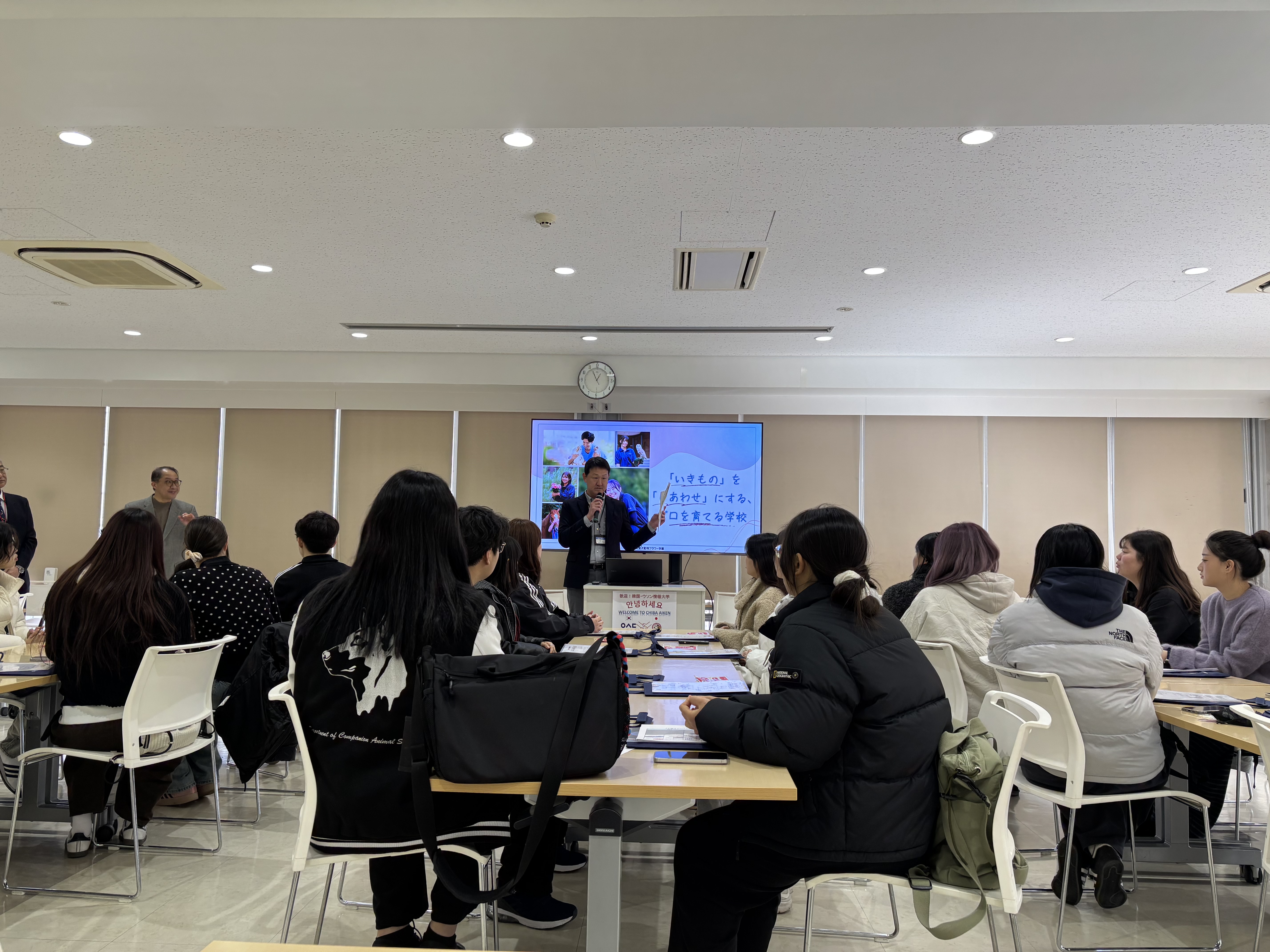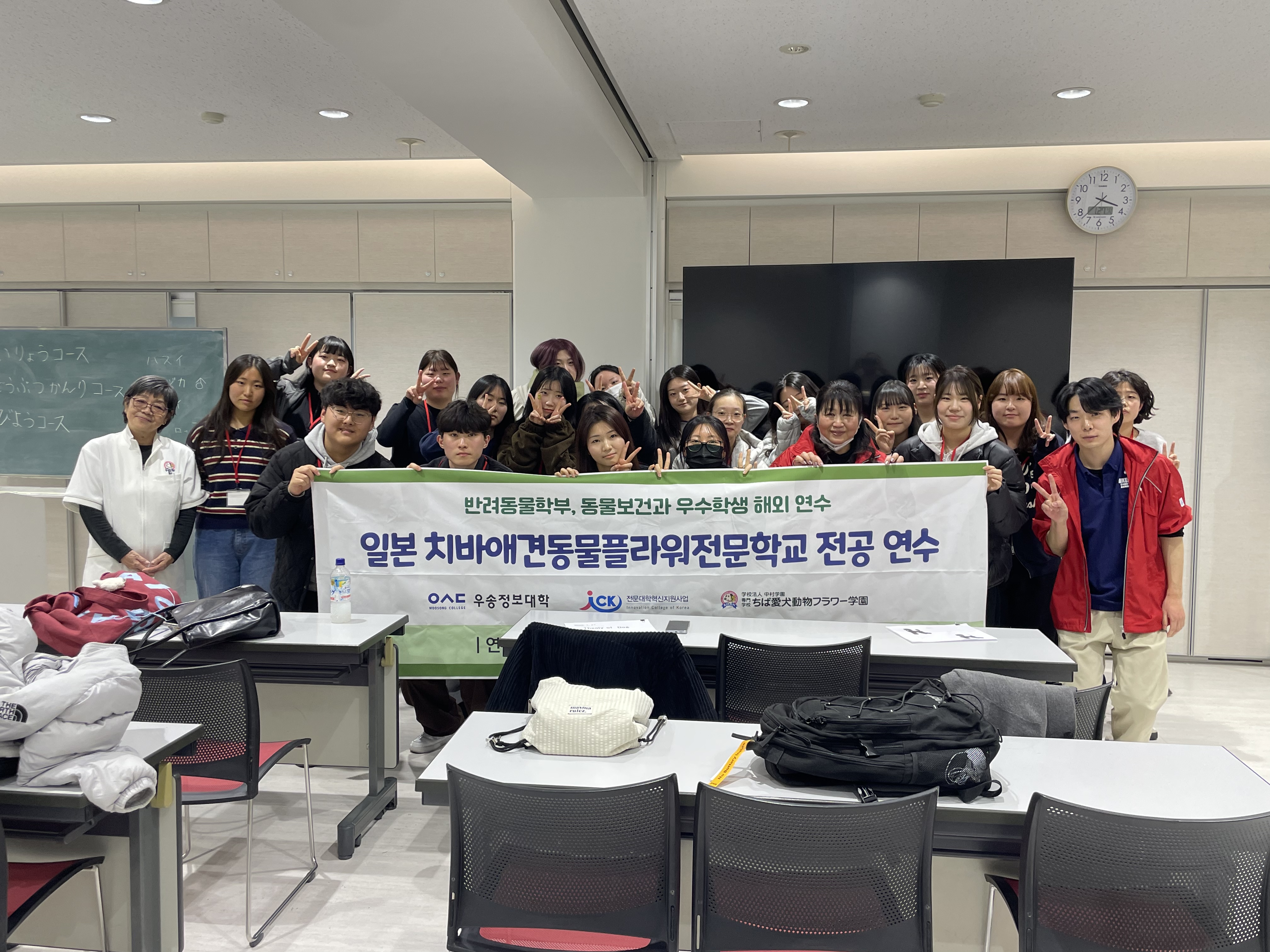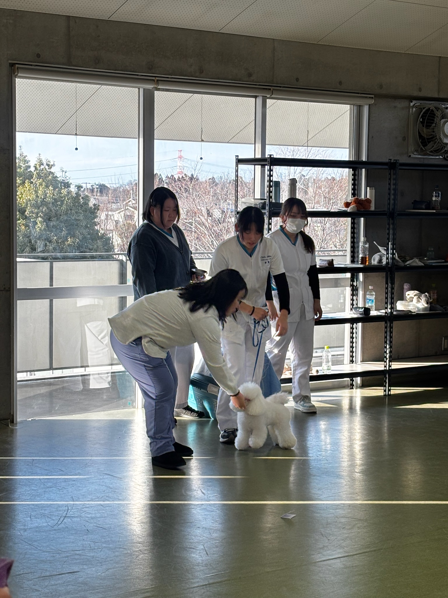 이론 수업으로 심실중격결손증과 패로사증에 대해 학습하며 반려동물의 선천성 심장 질환에 대한 이해를 높였습니다. 이후 DS로 이동하여 독트레이닝 수업을 진행하였으며, ‘앉아’, ‘엎드려’, ‘일어서’, ‘스핀’, ‘8자 사이사이’ 등의 동작을 배우고 일본 학생들과 함께 이를 활용한 게임 활동을 통해 훈련 기법을 실습하며 교류의 시간을 가졌습니다.