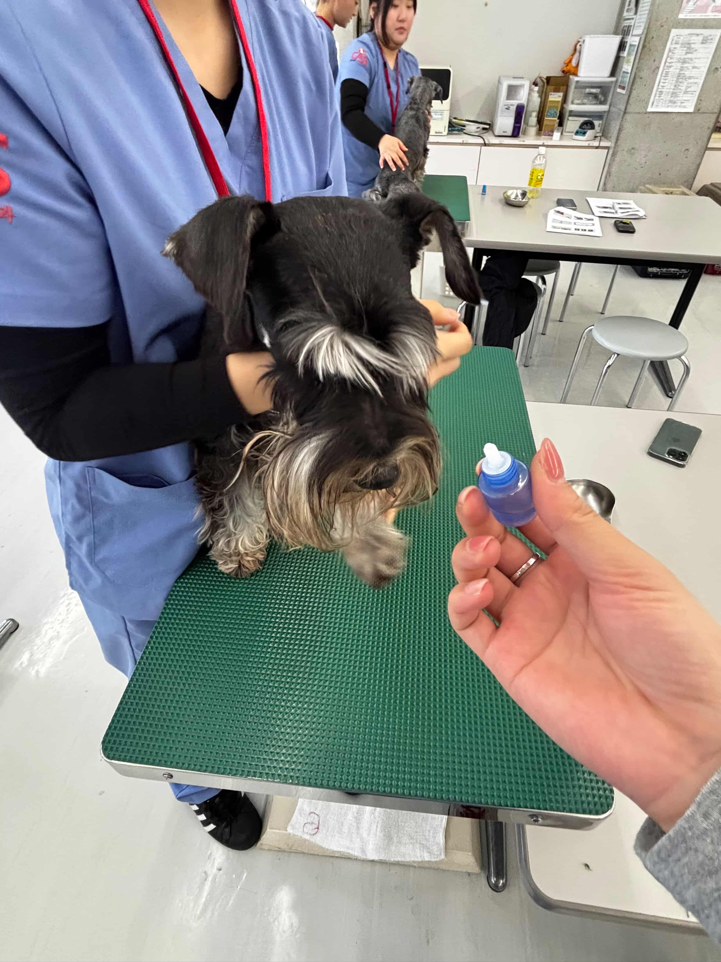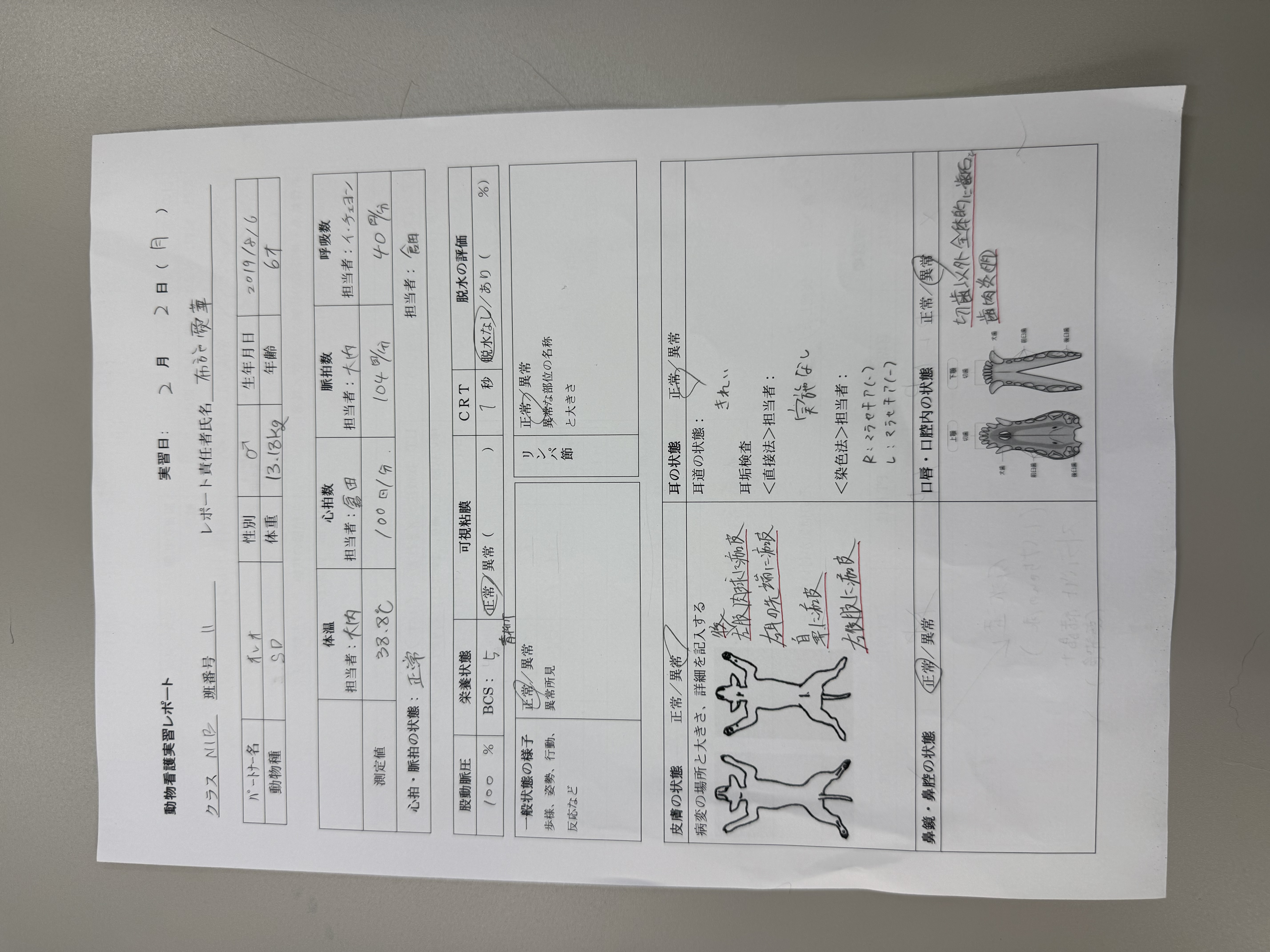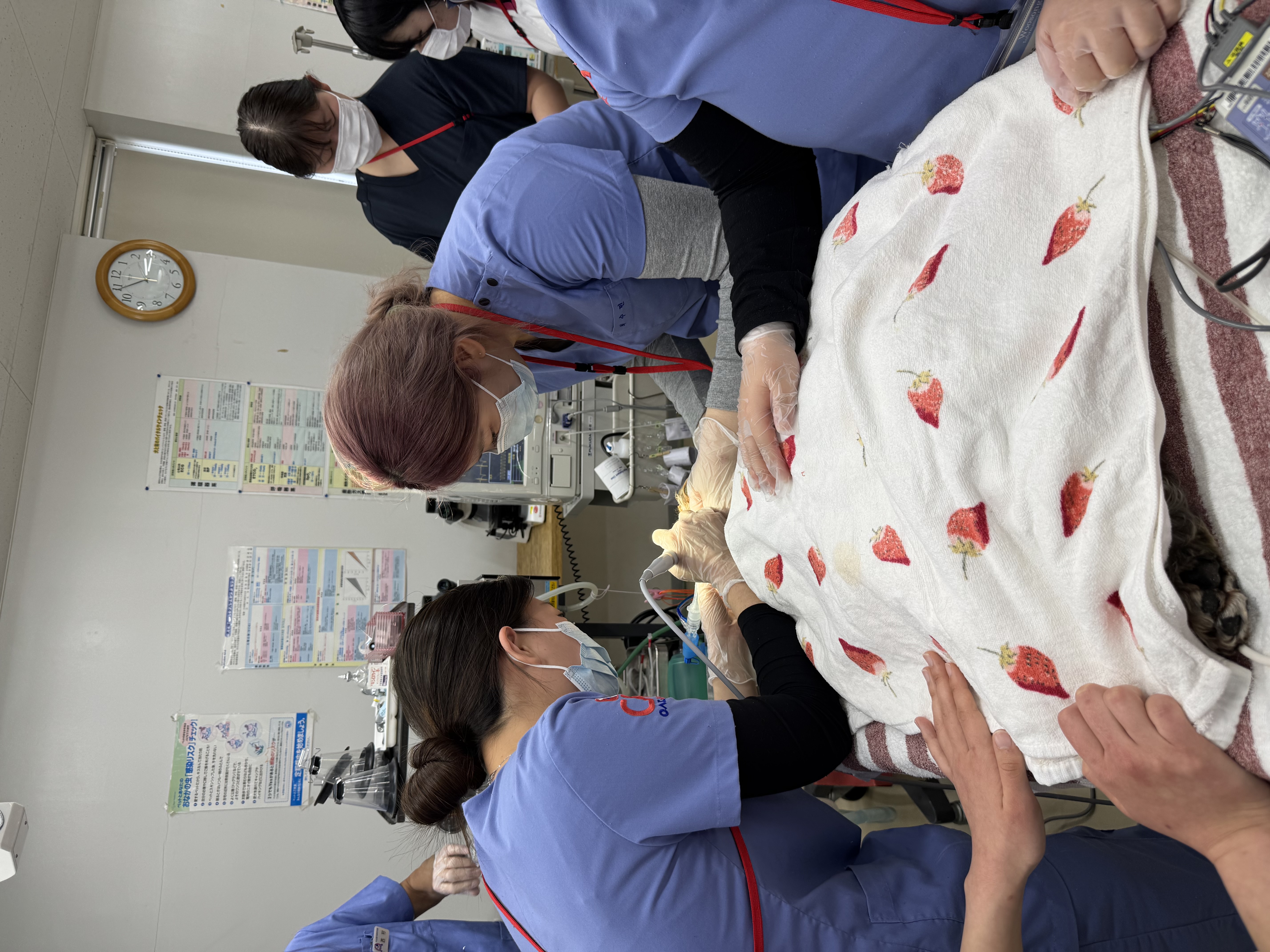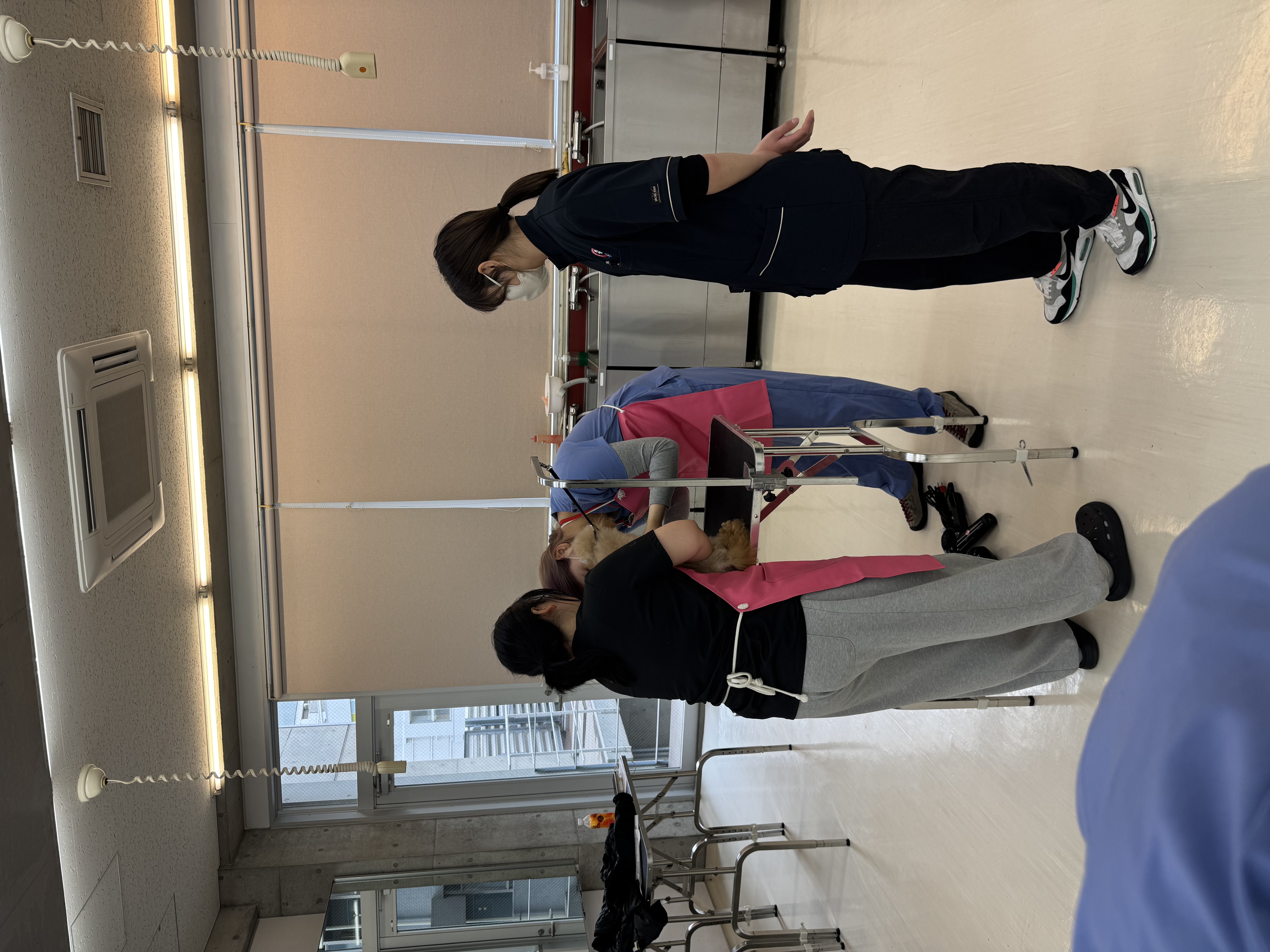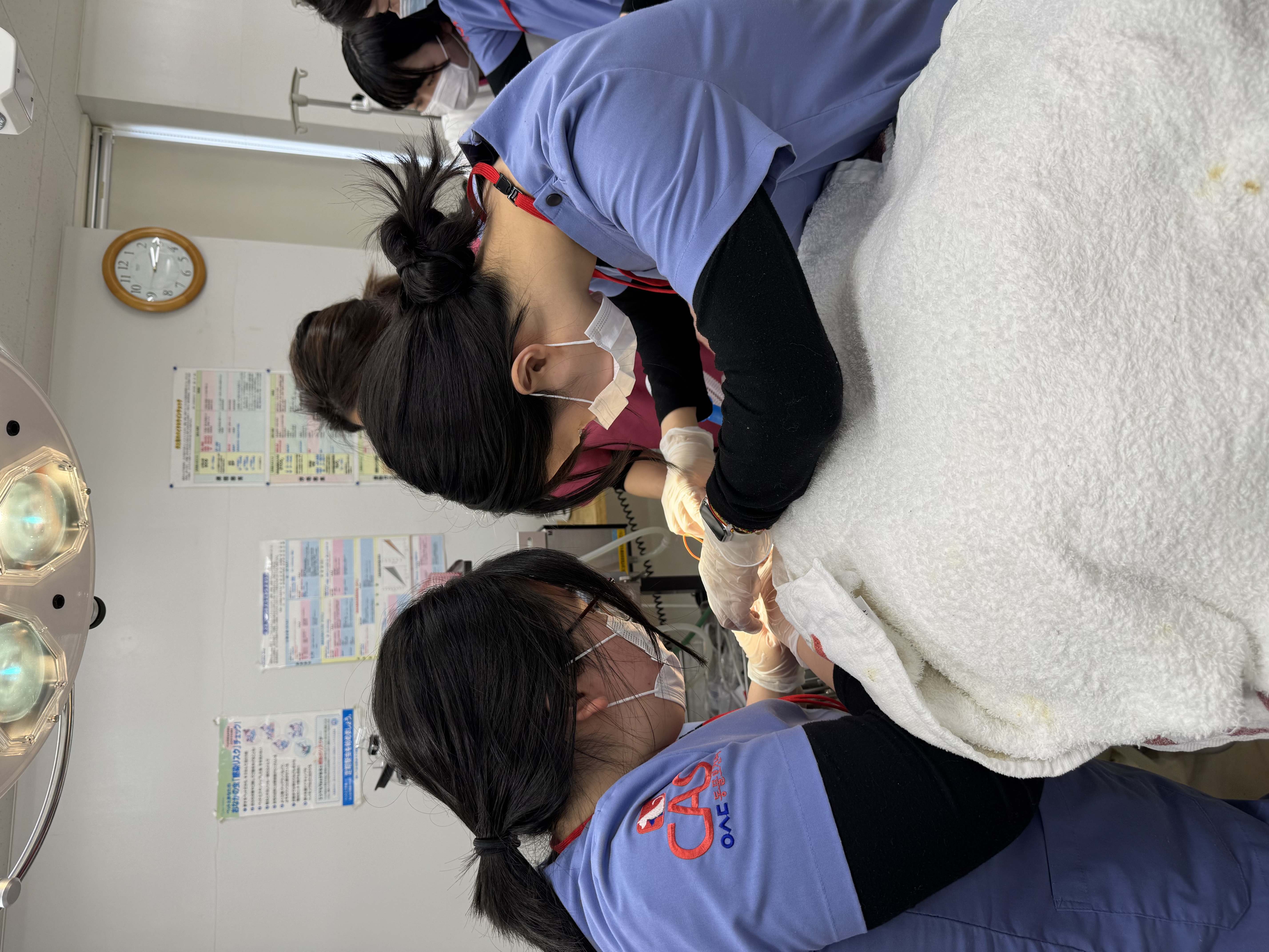 일본 1학년 학생들과 함께 강아지 기초 건강검진을 진행하고, 1인 보정 및 2인 보정 방법을 배웠습니다.