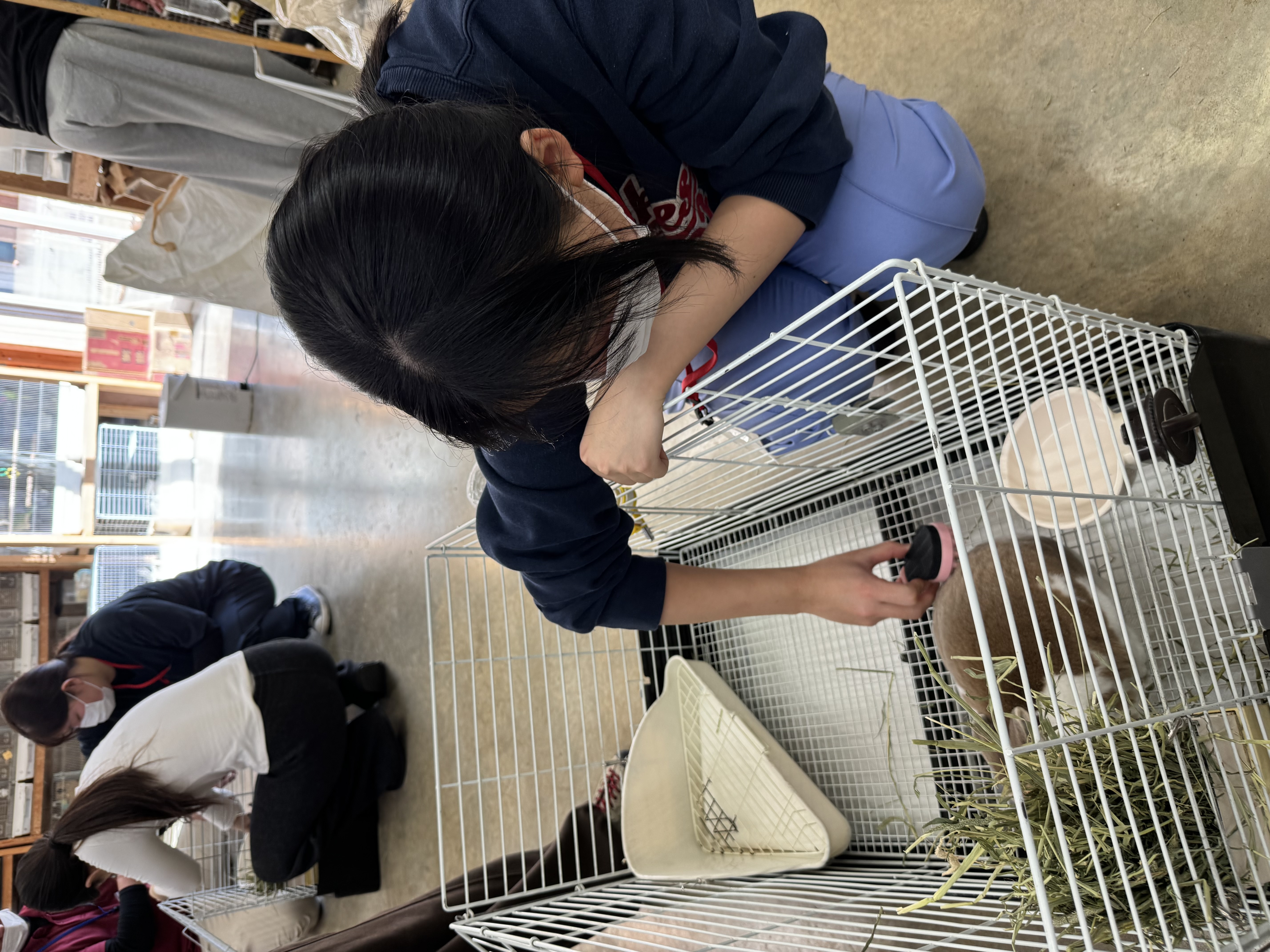 청소 후에는 토끼 털 빗는 방법을 배우고 직접 급여를 하며 친해지는 시간을 가졌습니다.