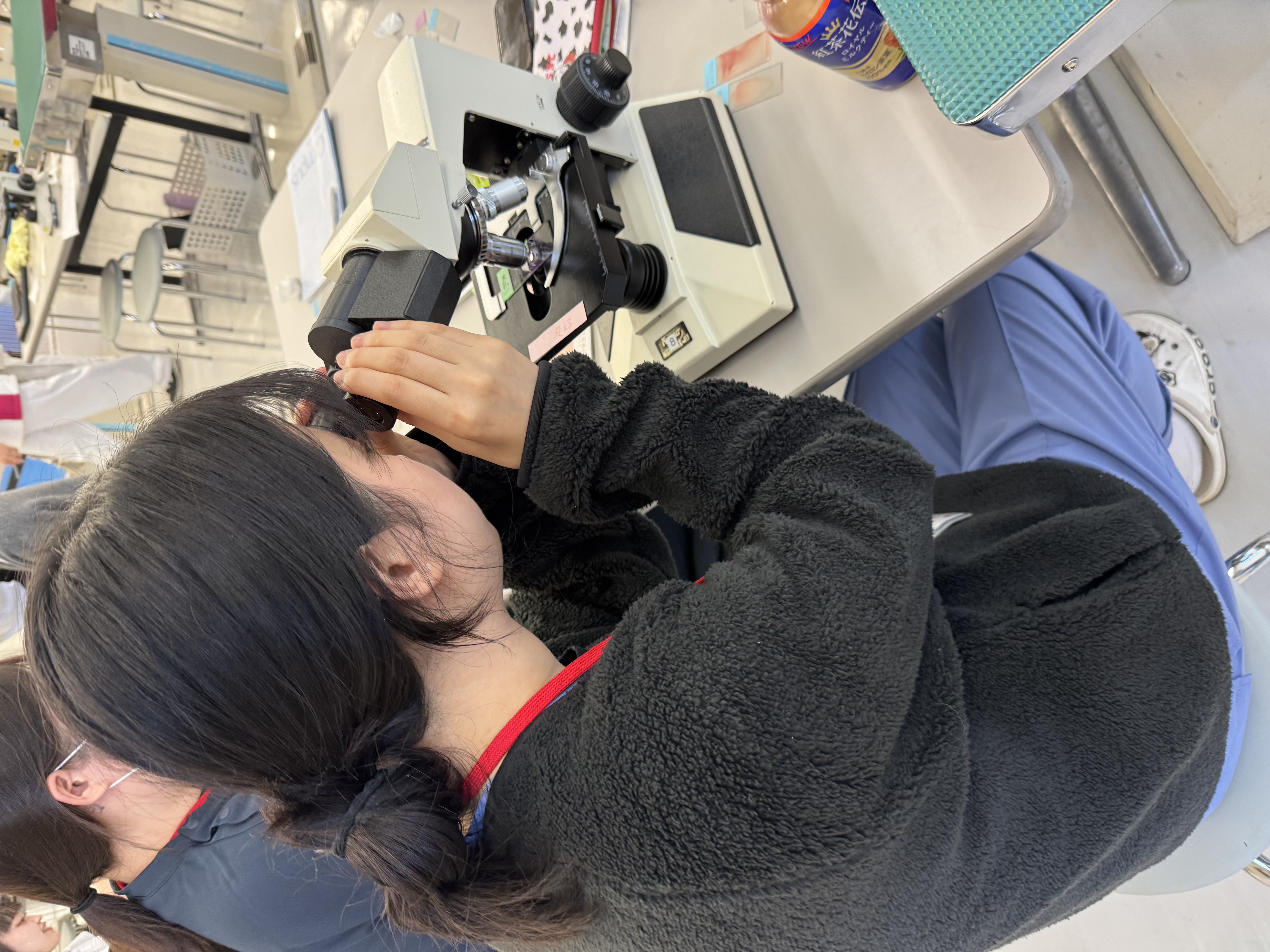 오후에는 일본 2학년과 함께 혈액 도말 방법을 학습하고 현미경으로 관찰하였습니다.