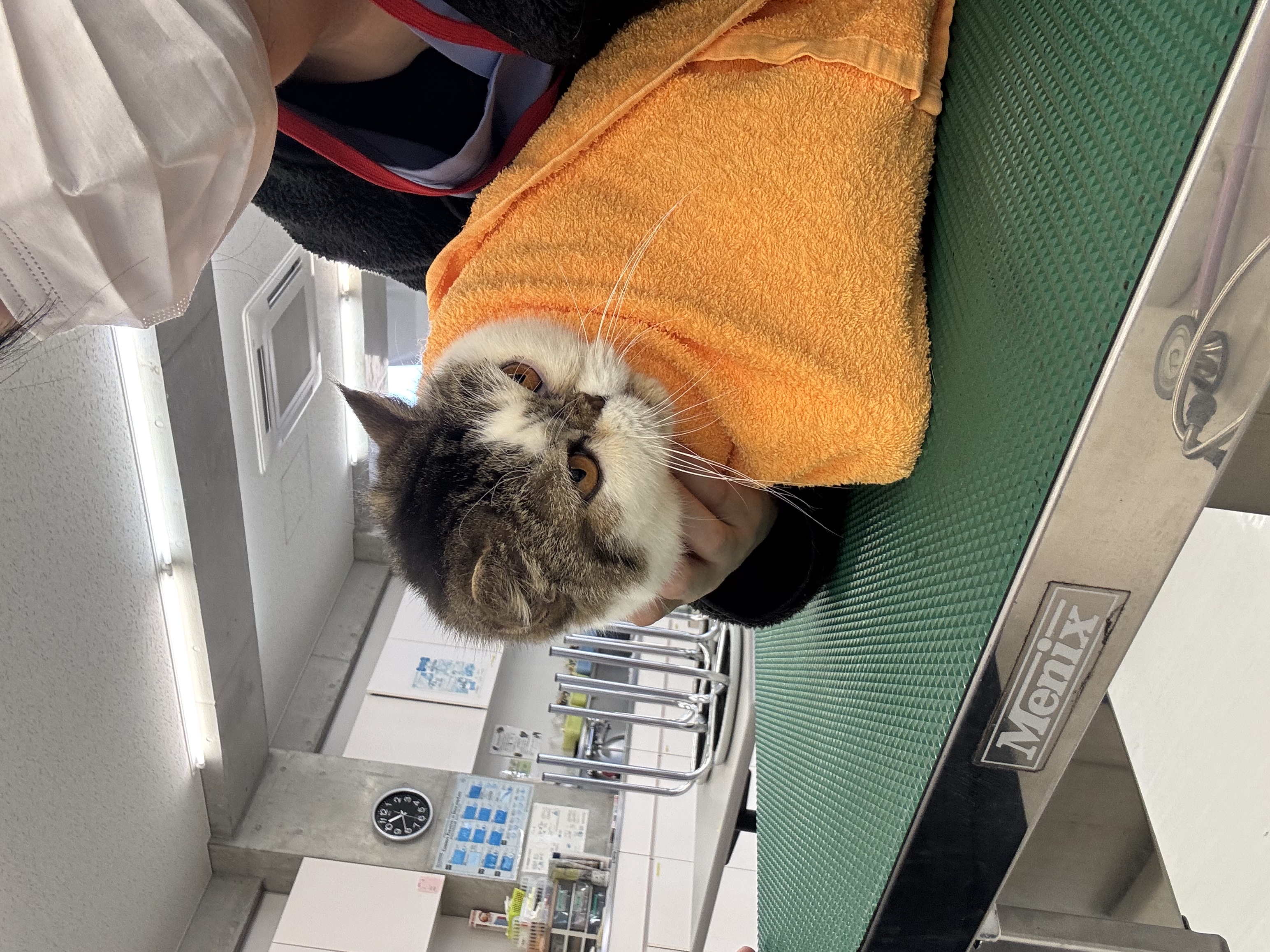 고양이 간호 실습을 진행하였습니다. 보정 방법을 학습하고 발톱 정리, 귀 청소, 빗질 등 기본 위생 관리를 실습하였습니다.