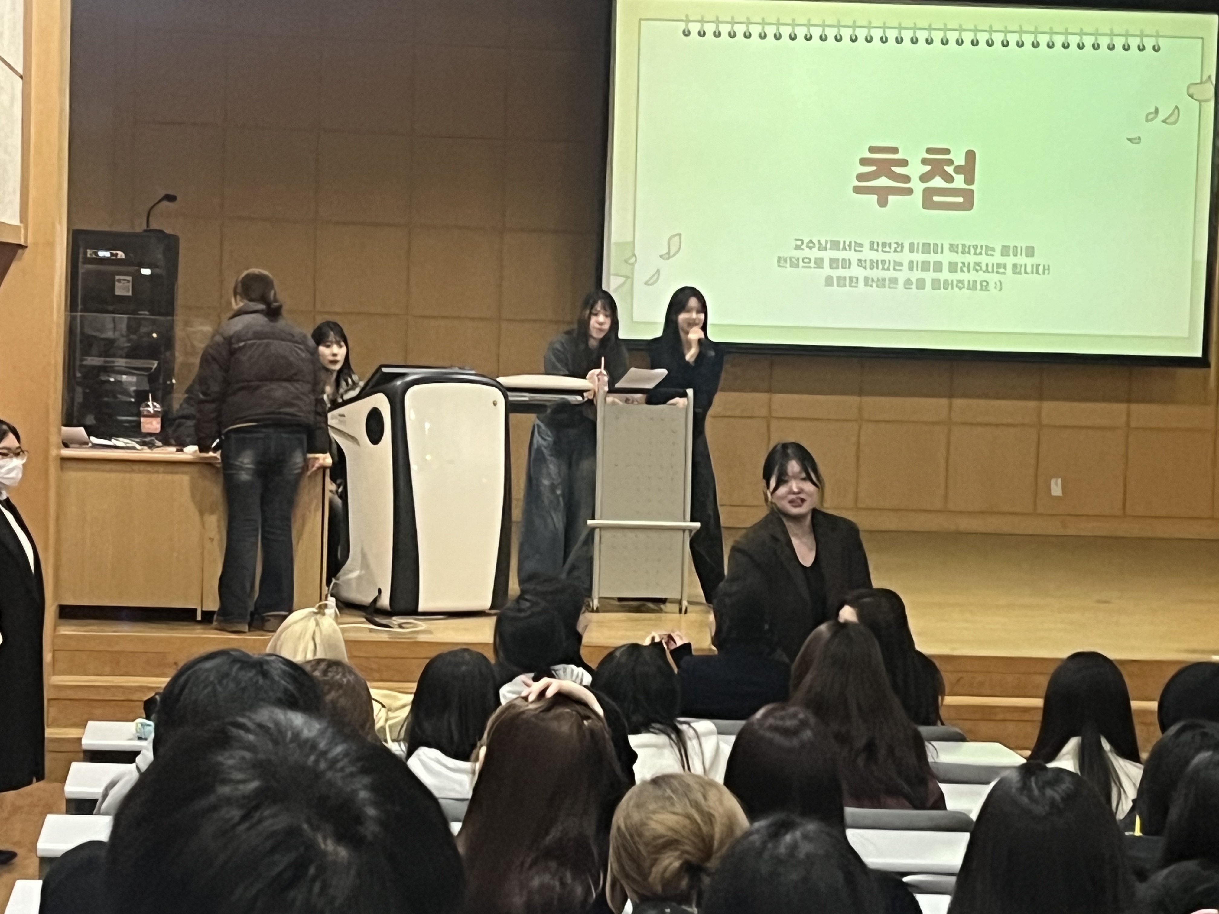 이후 교수님들의 색다른 매력을 엿볼 수 있는 TMI 퀴즈가 진행되어 현장의 분위기를 한층 밝게 만들었으며, 학생들의 적극적인 참여 속에 웃음이 끊이지 않는 시간이 이어졌습니다.